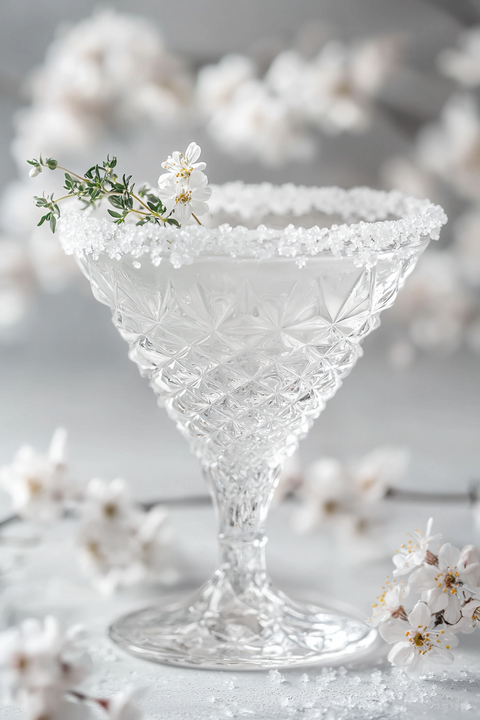 - Add a small sprig of fresh thyme through the sugar circle or float it delicately on the drink to mimic the image’s aesthetic.