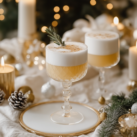 Add a pop of color with the Saffron Gin Fizz. Its frothy top, adorned with saffron threads and a rosemary sprig, makes it a stunning centerpiece drink.