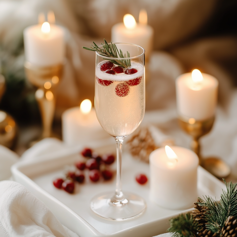 The Lingonberry Sparkler is a light and festive champagne-based drink that embodies Scandinavian flavors. With floating lingonberries and a sugared rosemary sprig, this drink is as refreshing as it is beautiful.
