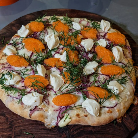 Generously top it with Kalix Vendace Roe (Löjrom).