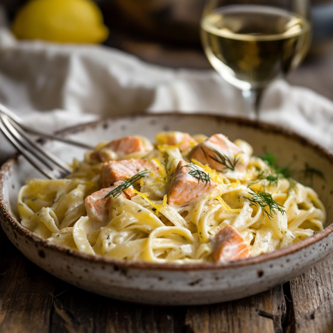 - Pour in 1 cup heavy cream, then add zest and juice of 1 lemon. Season with salt and pepper to taste.