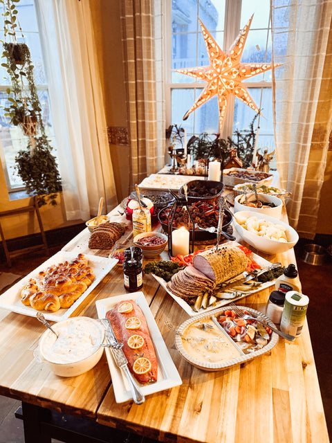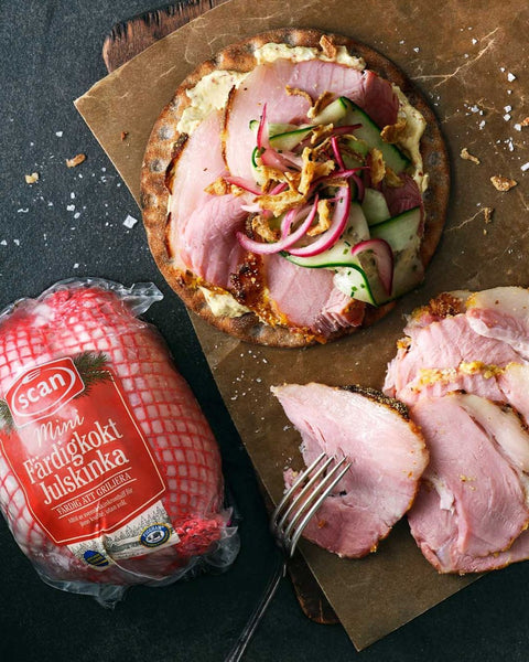 In some Swedish households, the unveiling of the julskinka includes a special moment called the "first slice" tradition. Before glazing and baking, a small slice of the freshly cooked ham is cut and served as a taste test. This isn't just about quality control—it's a cherished ritual! Often enjoyed warm and paired with a dollop of mustard on crispbread (knäckebröd), this first bite is a sneak peek at the festive flavors to come. For many, it's a nostalgic and intimate moment that marks the true beginning of the Christmas celebration. This tradition emphasizes the Swedish love for savoring food as an experience and reflects the deep connection between family, heritage, and the holiday feast.