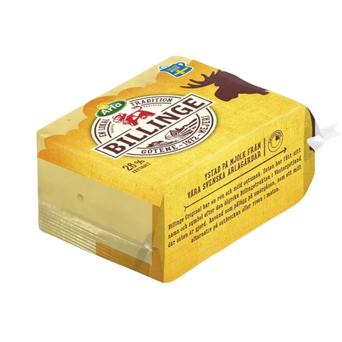 Billinge Original is mild with notes of nuttiness and a pleasantly fresh aftertaste. It is edgeless, smooth and round-beaked and is perfect as a topping or to cut into pieces as a snack. Billinge cheese is made in Västergötland and is named after the elk-rich area around Billingen. The Arla Ko® brand guarantees that the cheese is made from 100 percent Swedish milk.