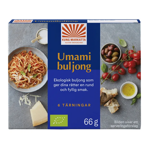 Umami is usually called the fifth basic taste and the word itself means 'good taste' in Japanese. King Markatta's vegetarian Umami broth gives your dishes a round and full-bodied taste. 6 cubes of 11 g = 3 l of finished broth.